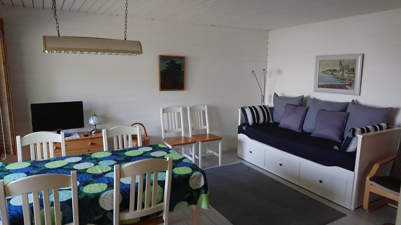 Mökissä on tupa, pieni makuuhuone ja keittiö.